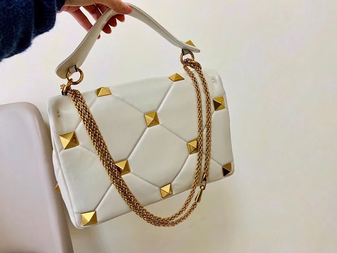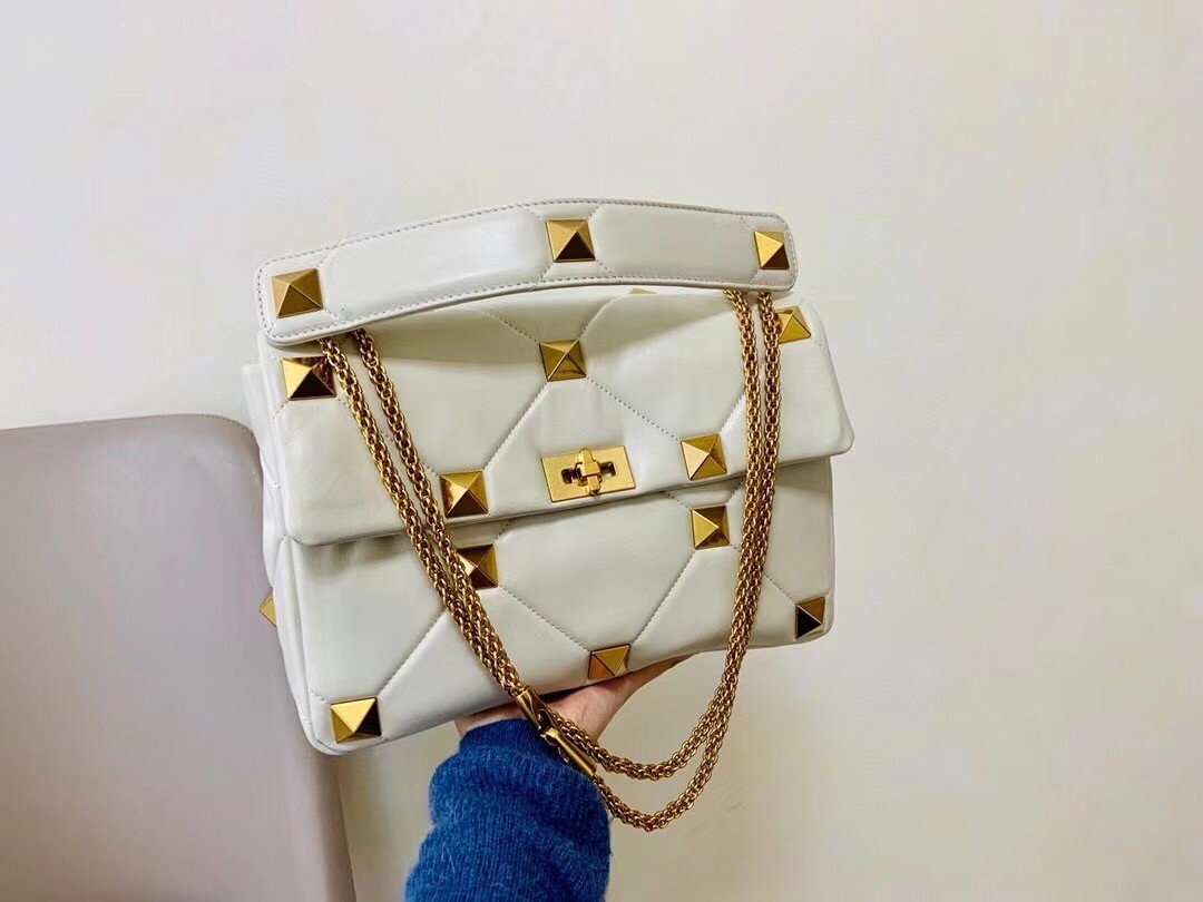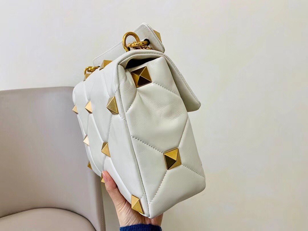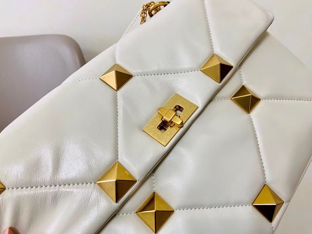 Valentino Roman Stud Chain Bag In Ivory Lambskin