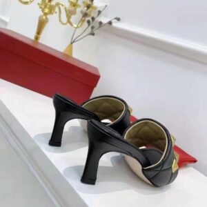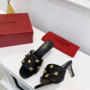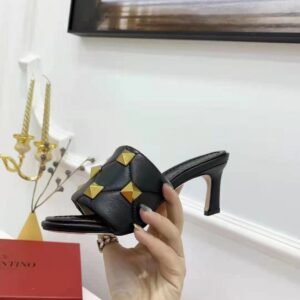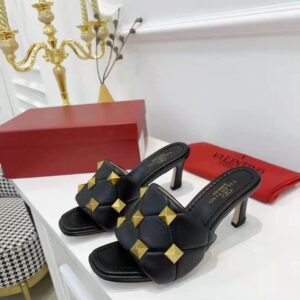 Valentino Roman Stud Slide Sandals 65mm In Black Lambskin