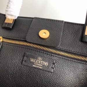 Valentino Roman Stud Tote Bag In Black Grainy Calfskin