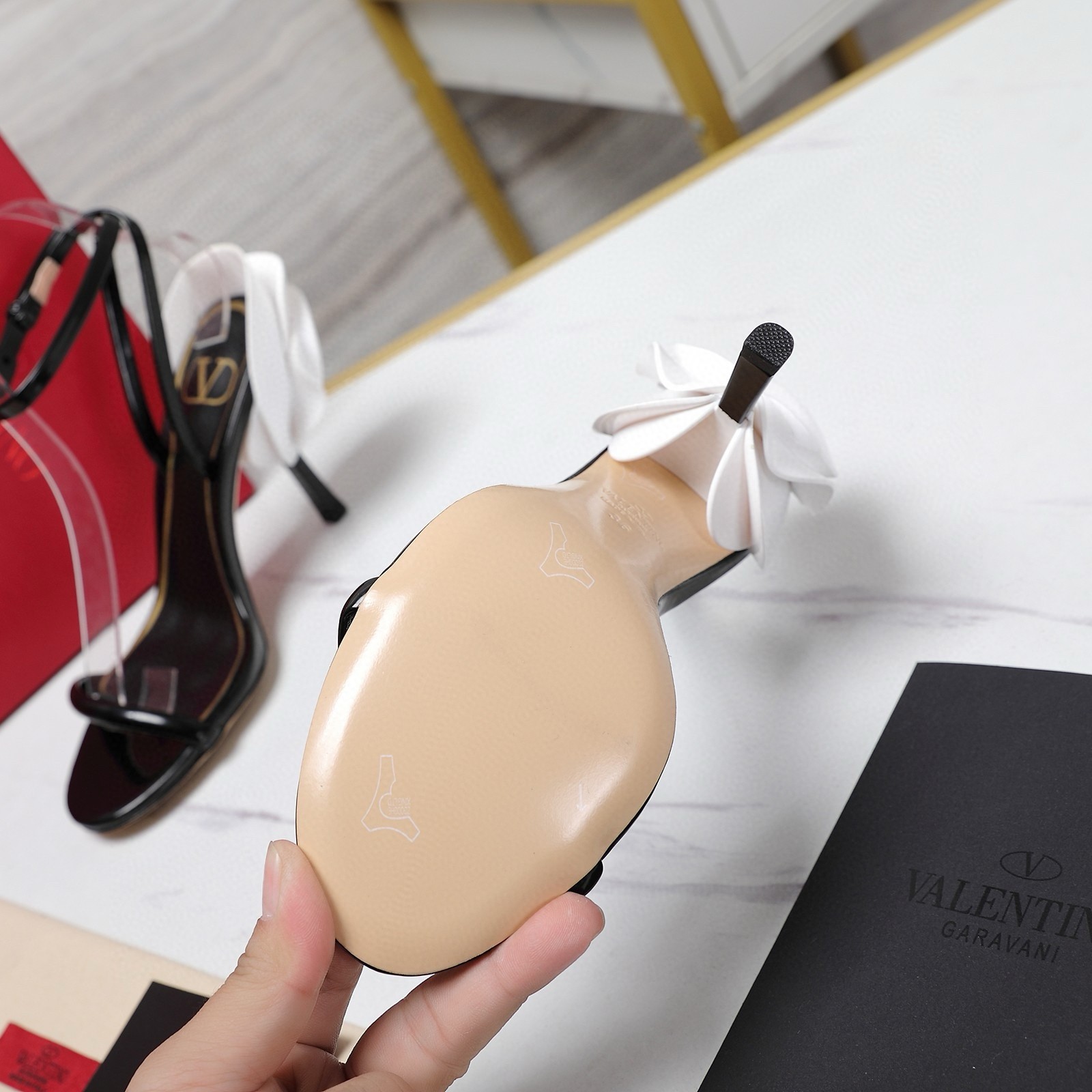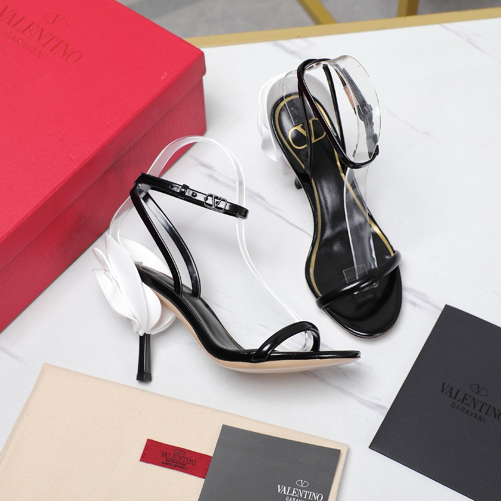 Valentino Roserouche Sandals 1959 100mm in Black Calfskin
