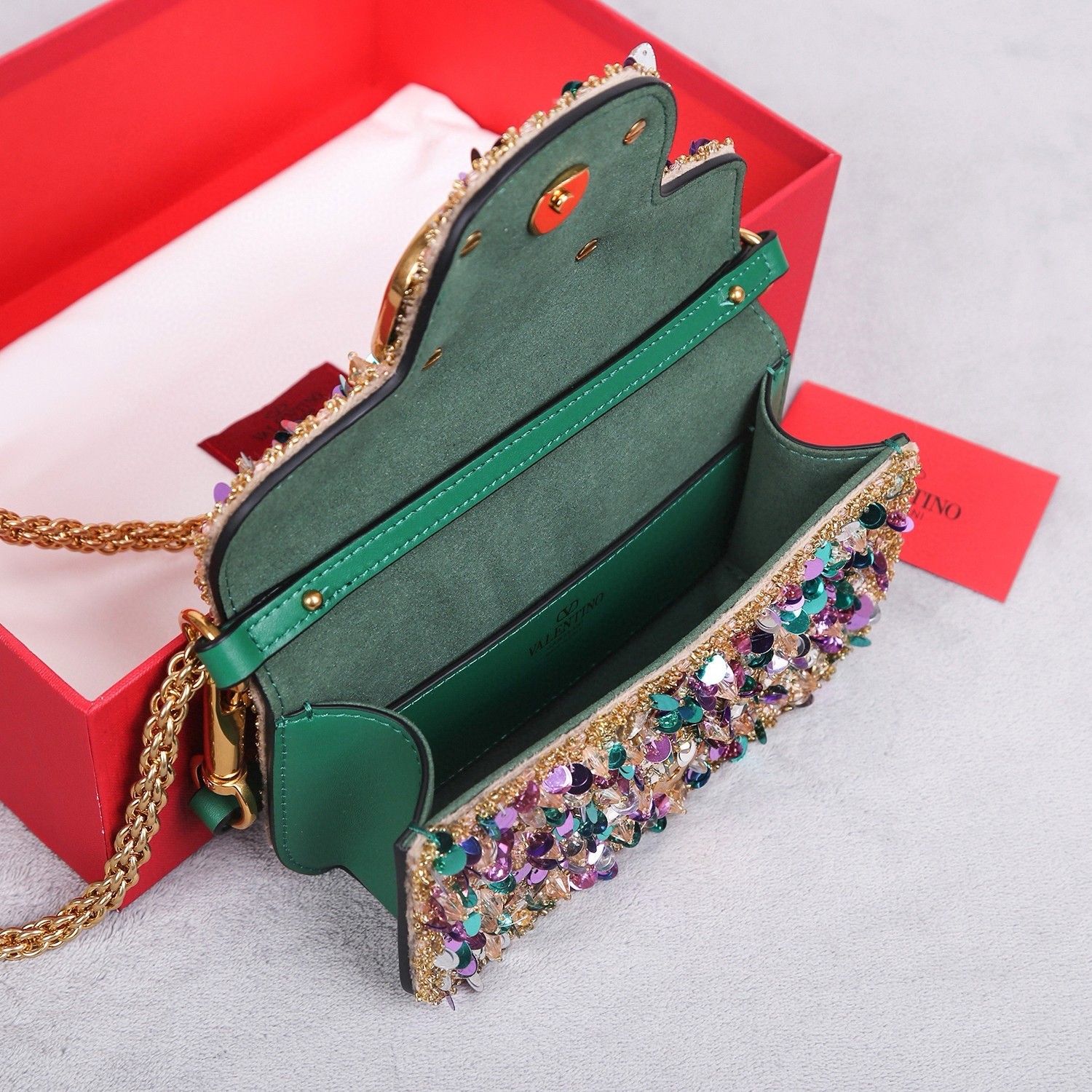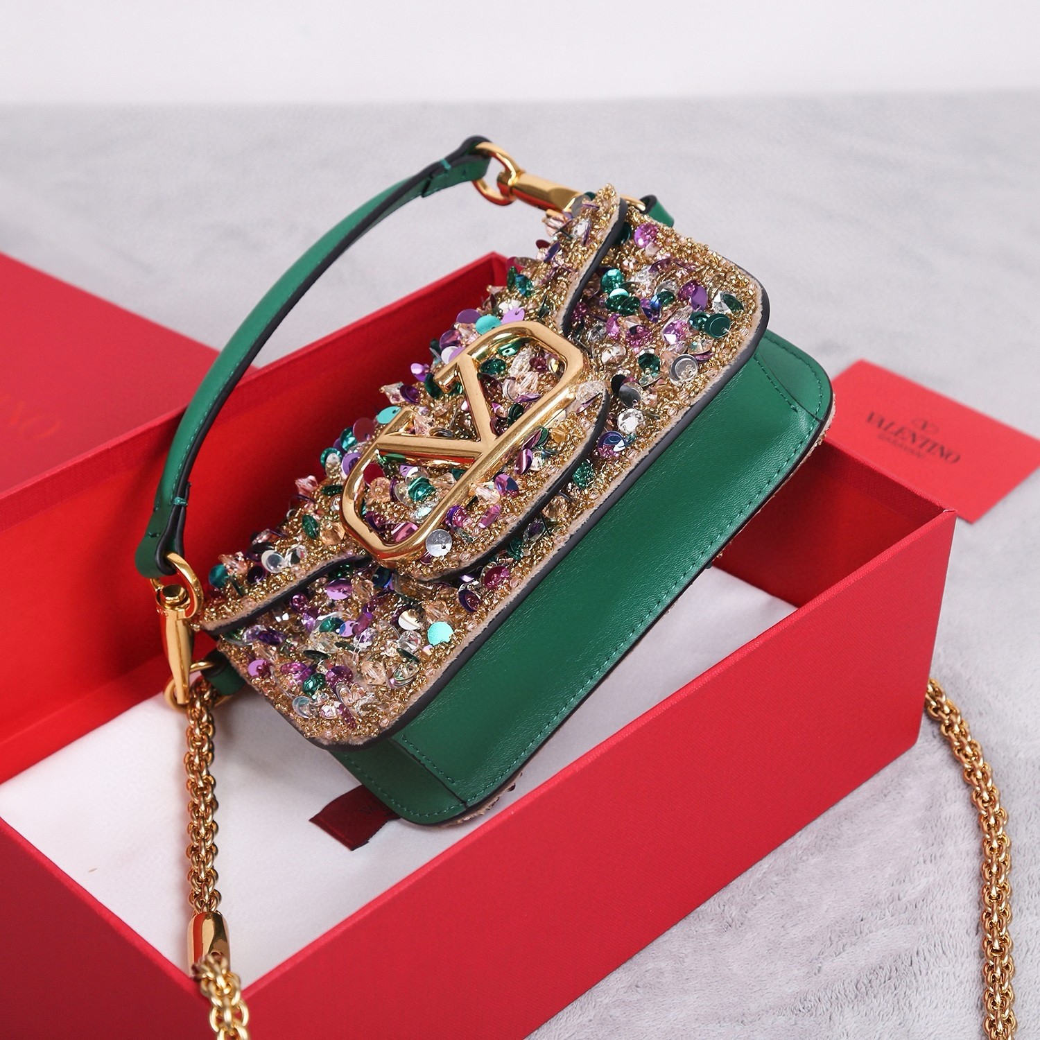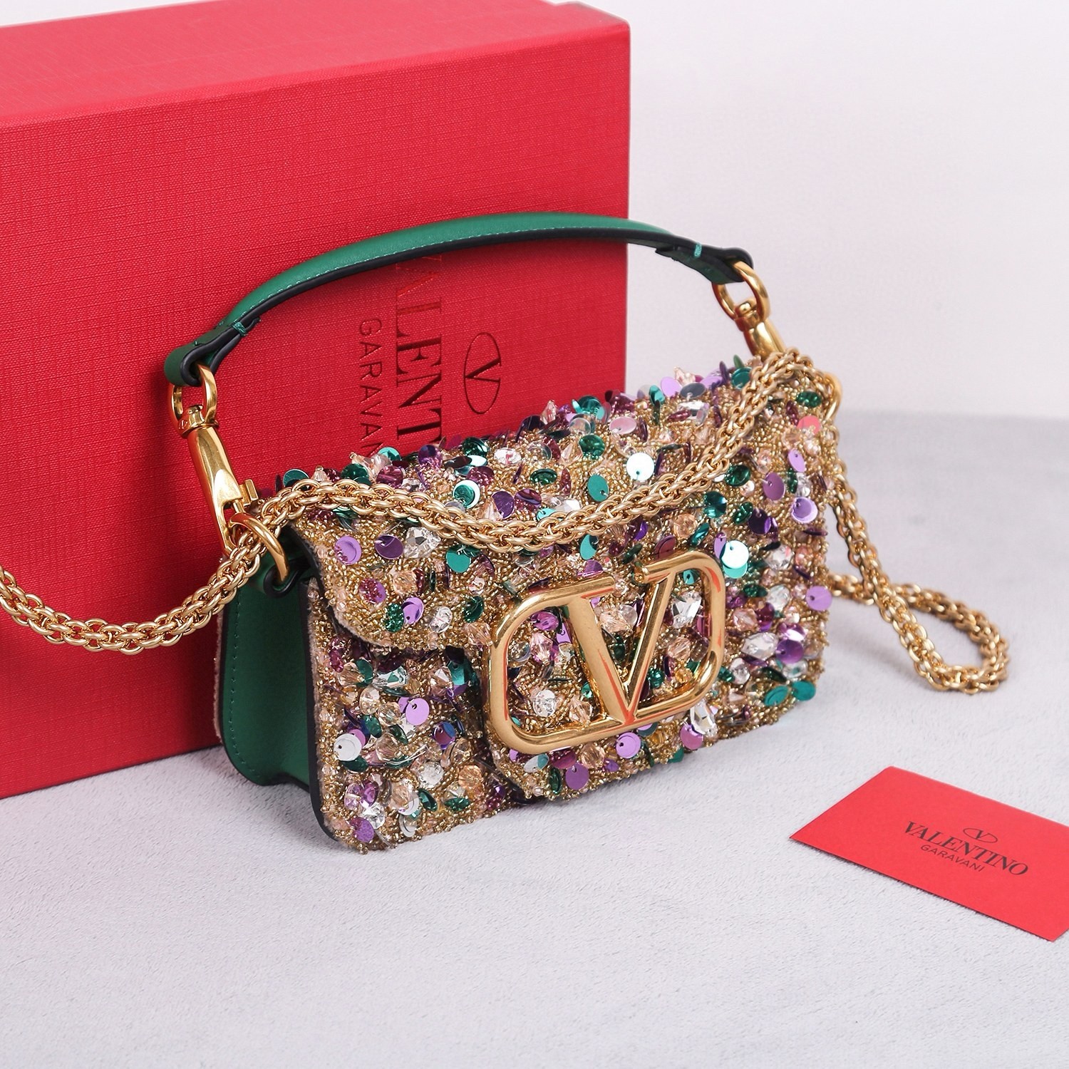 Valentino Small Loco Shoulder Bag with Gold 3D-effect Embroidery