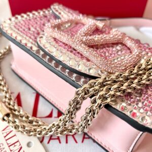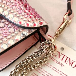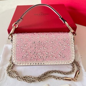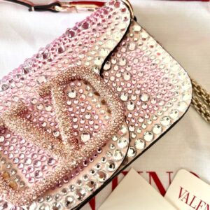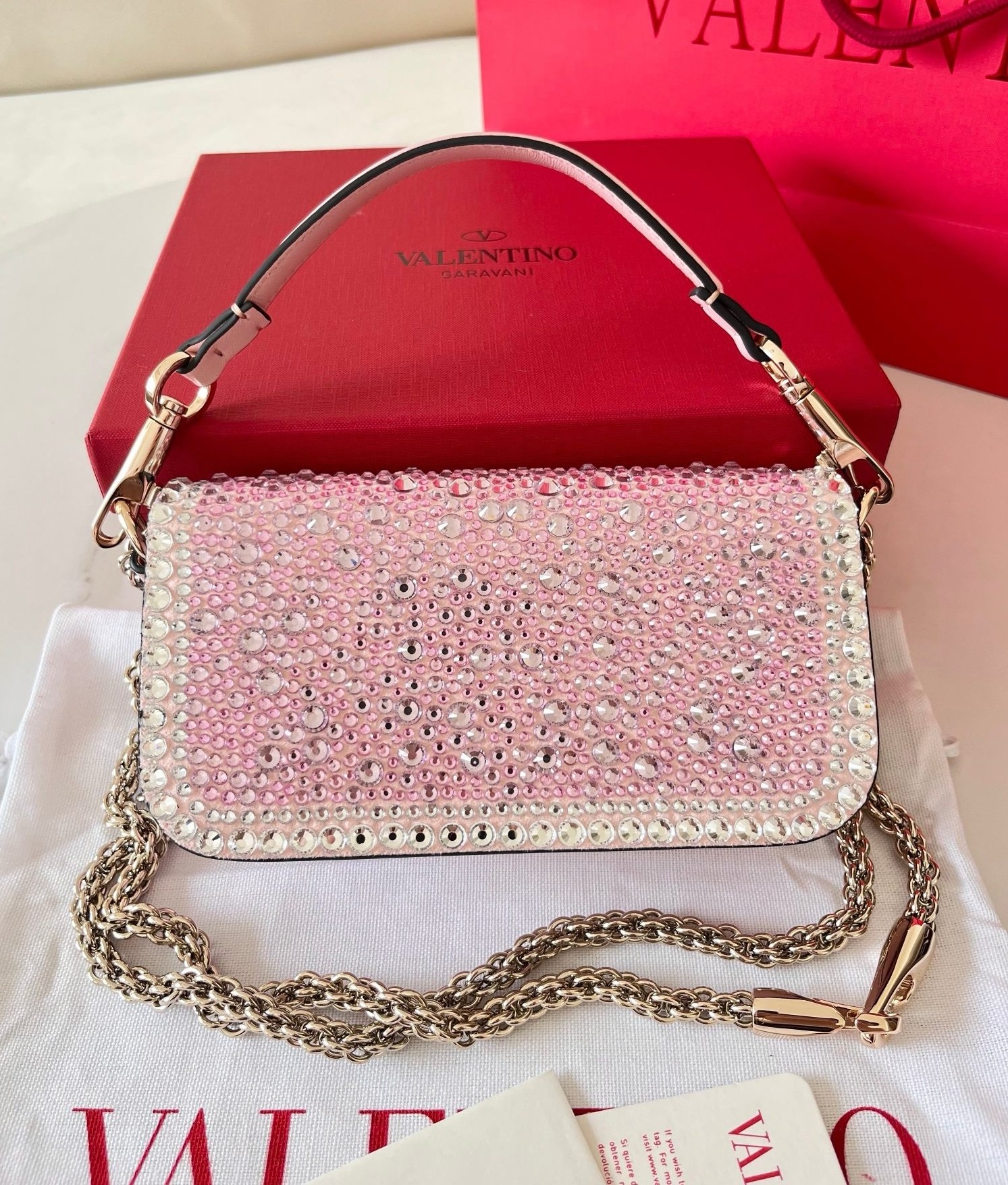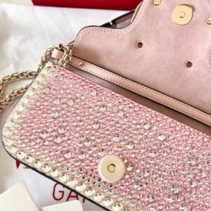 Valentino Small Loco Shoulder Pink Bag with Rhinestone Applique