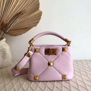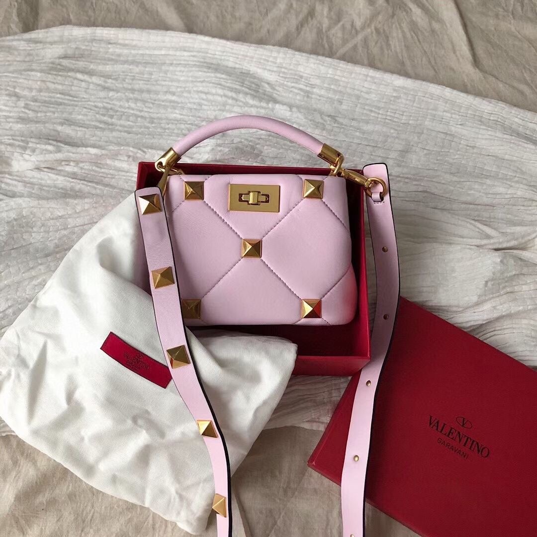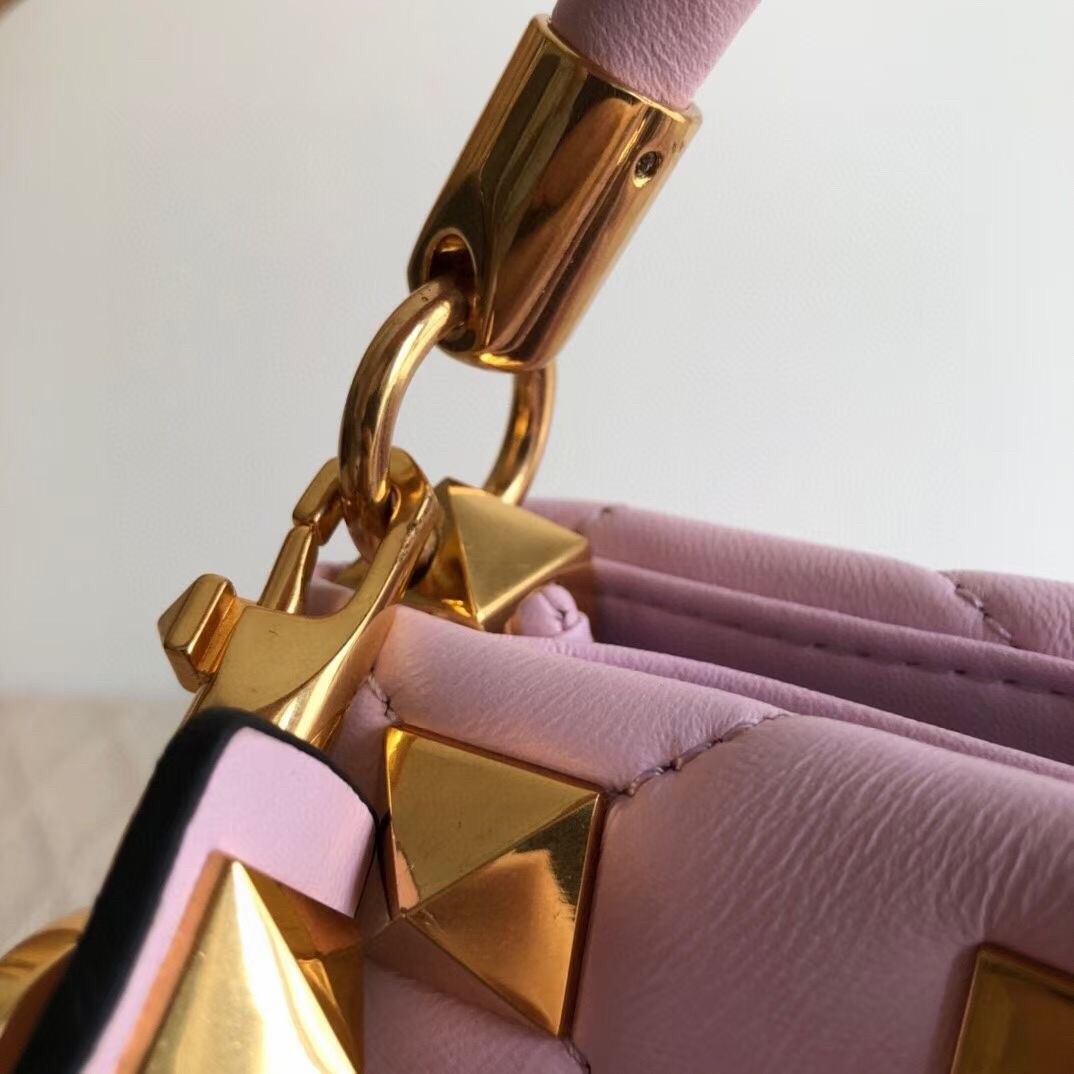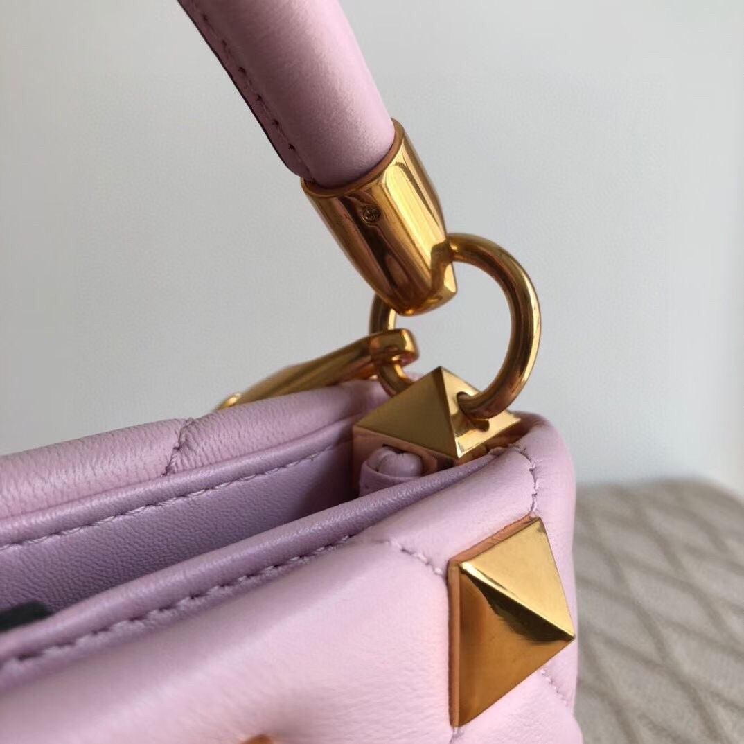 Valentino Small Roman Stud Top Handle Bag In Pink Nappa