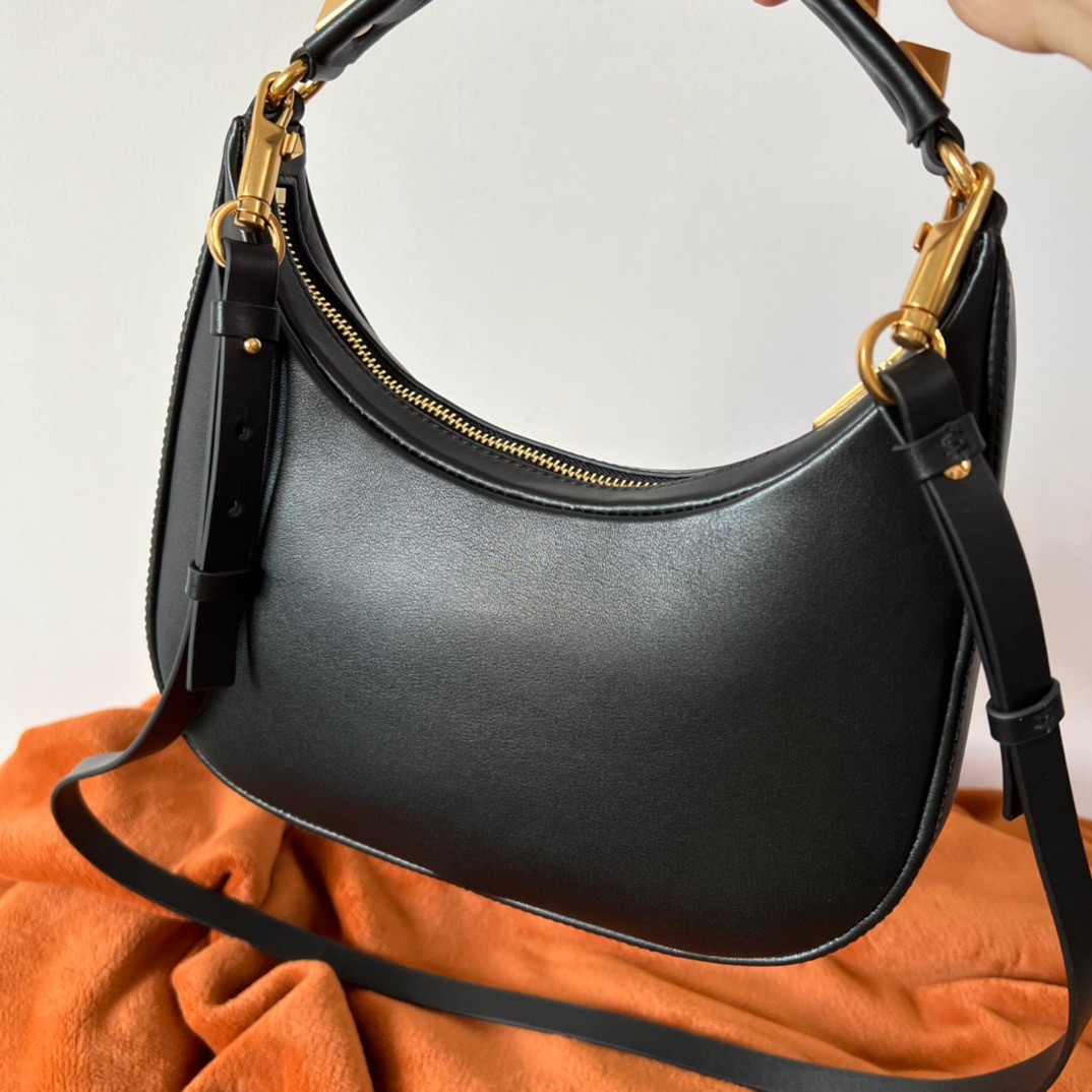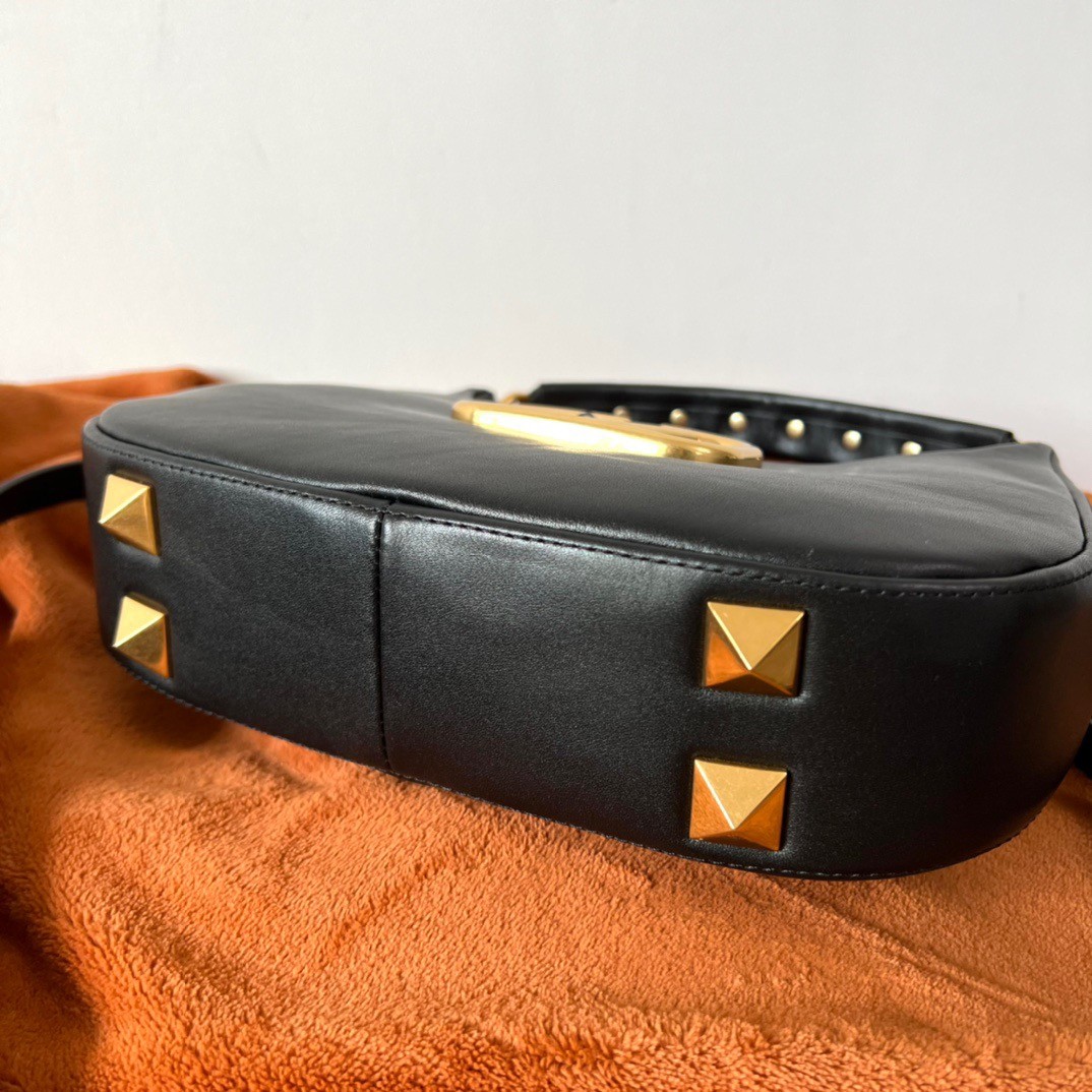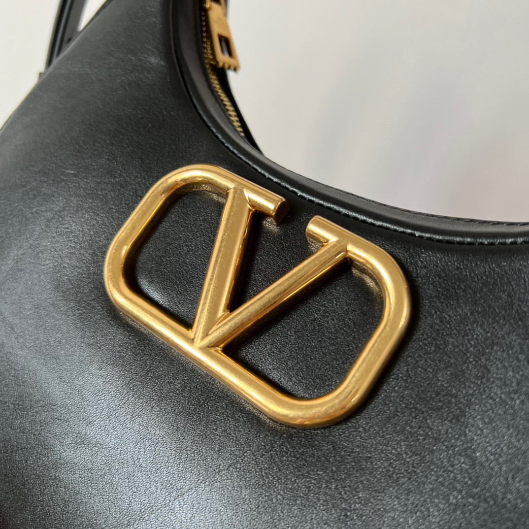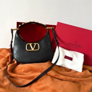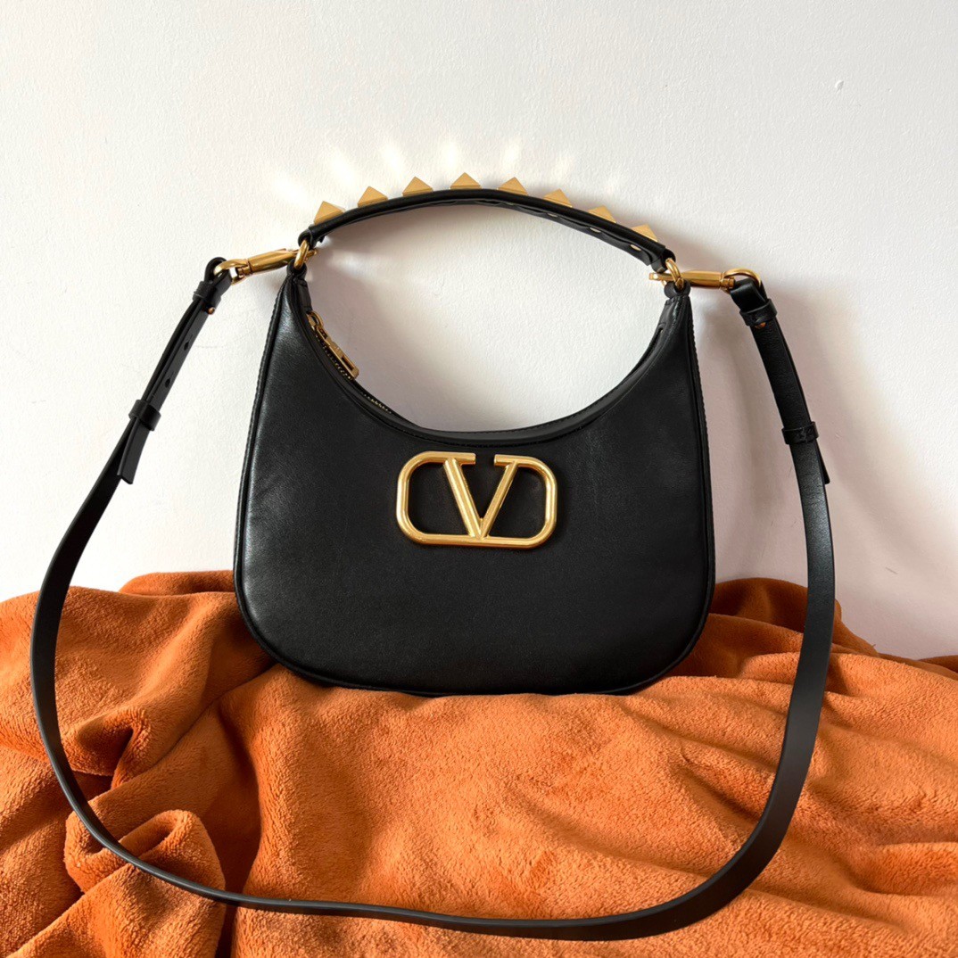 Valentino Stud Sign Hobo Bag In Black Calfskin