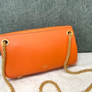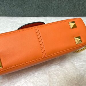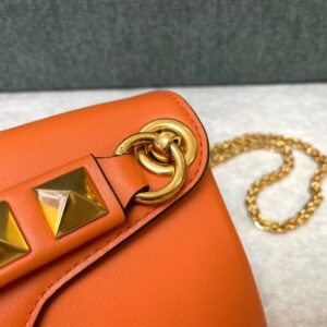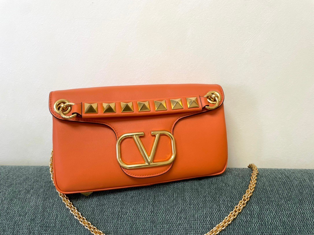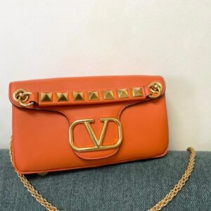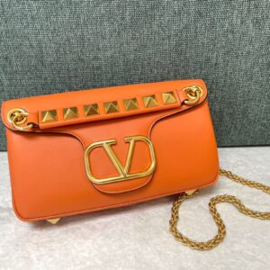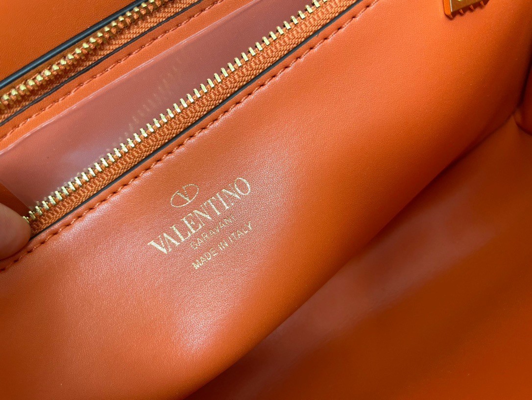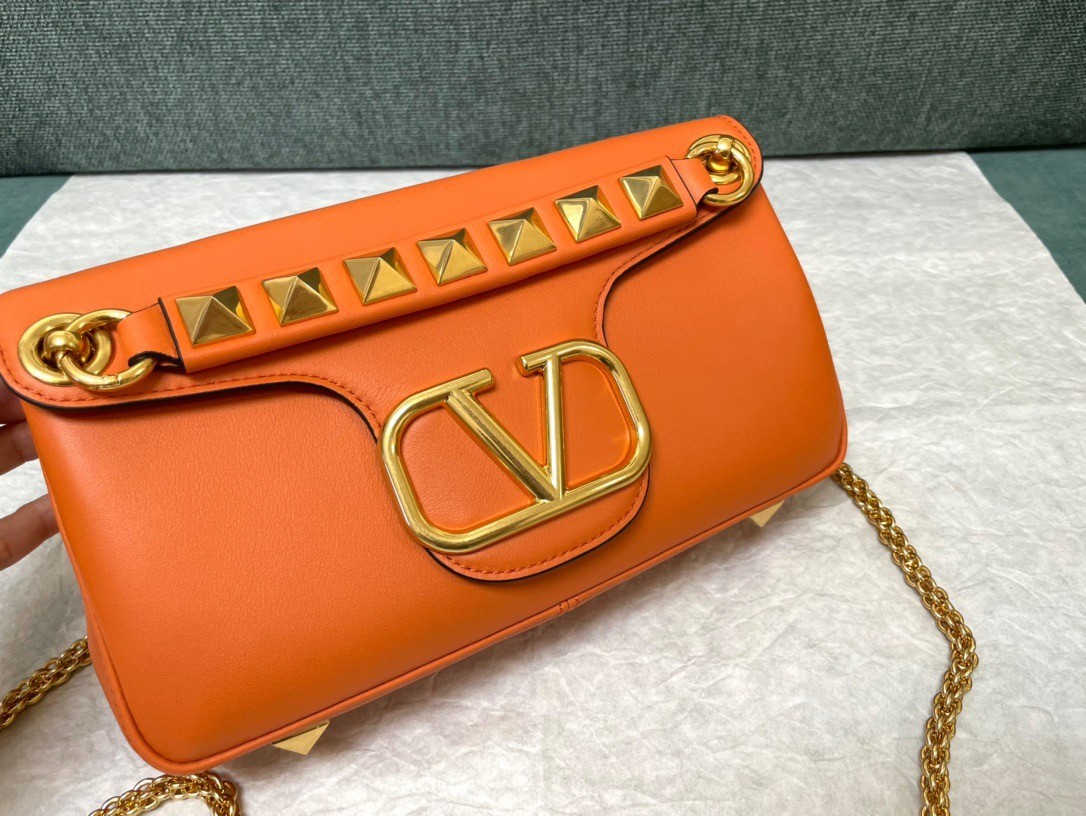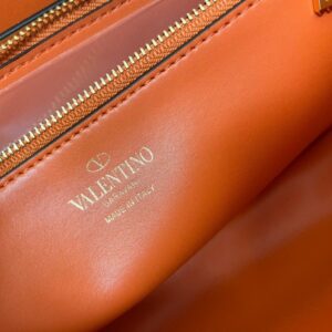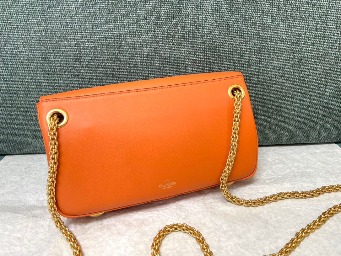 Valentino Stud Sign Shoulder Bag In Orange Nappa Leather