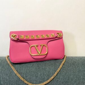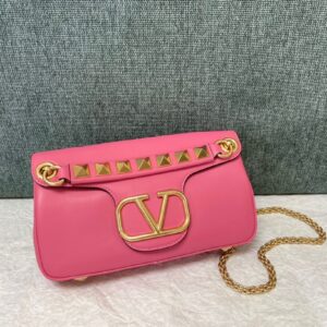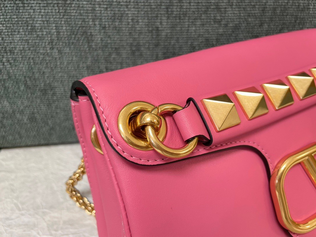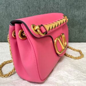 Valentino Stud Sign Shoulder Bag In Pink Nappa Leather
