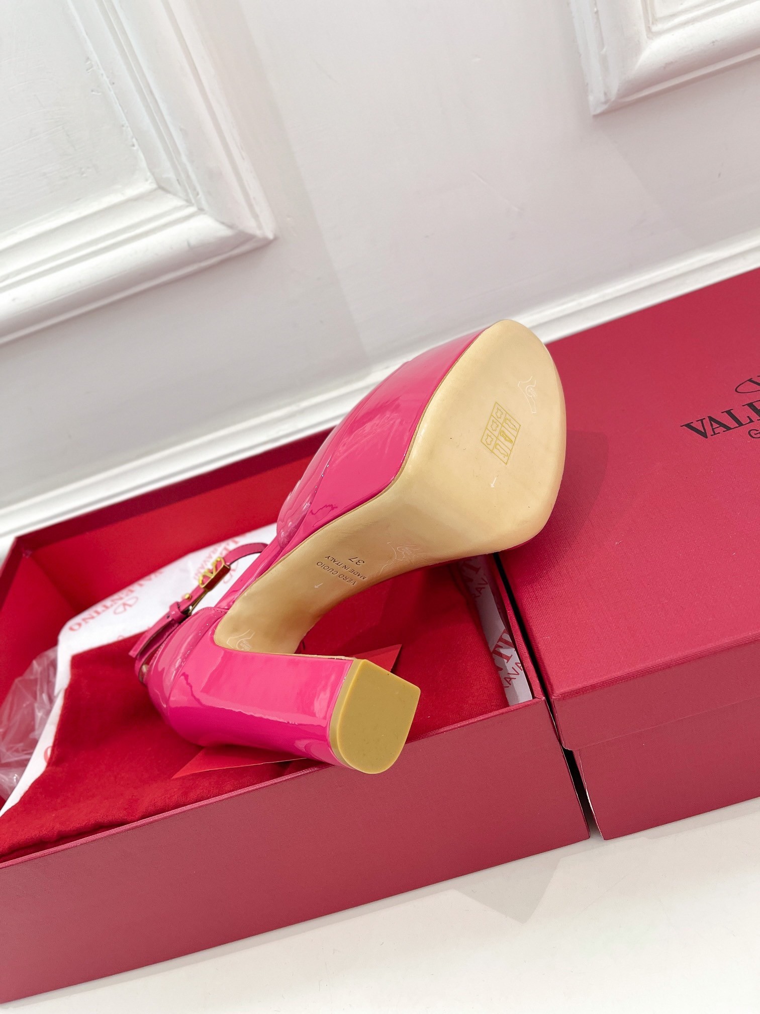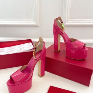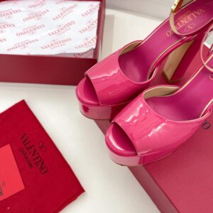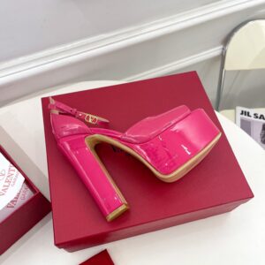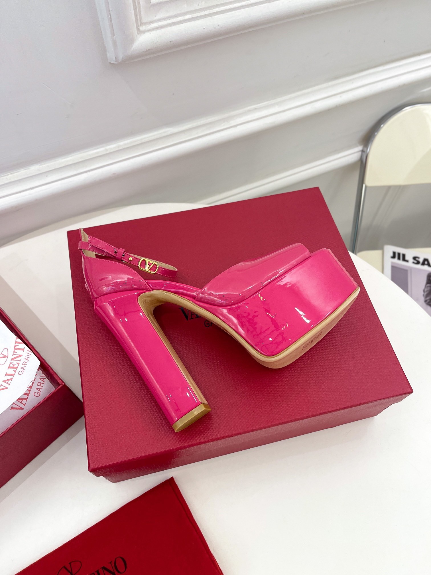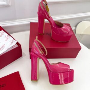 Valentino Tan-Go Platform Sandals 155mm In Rose Red Patent Leather