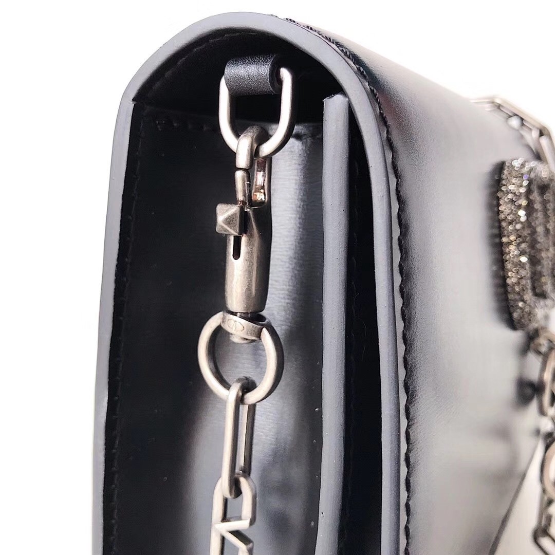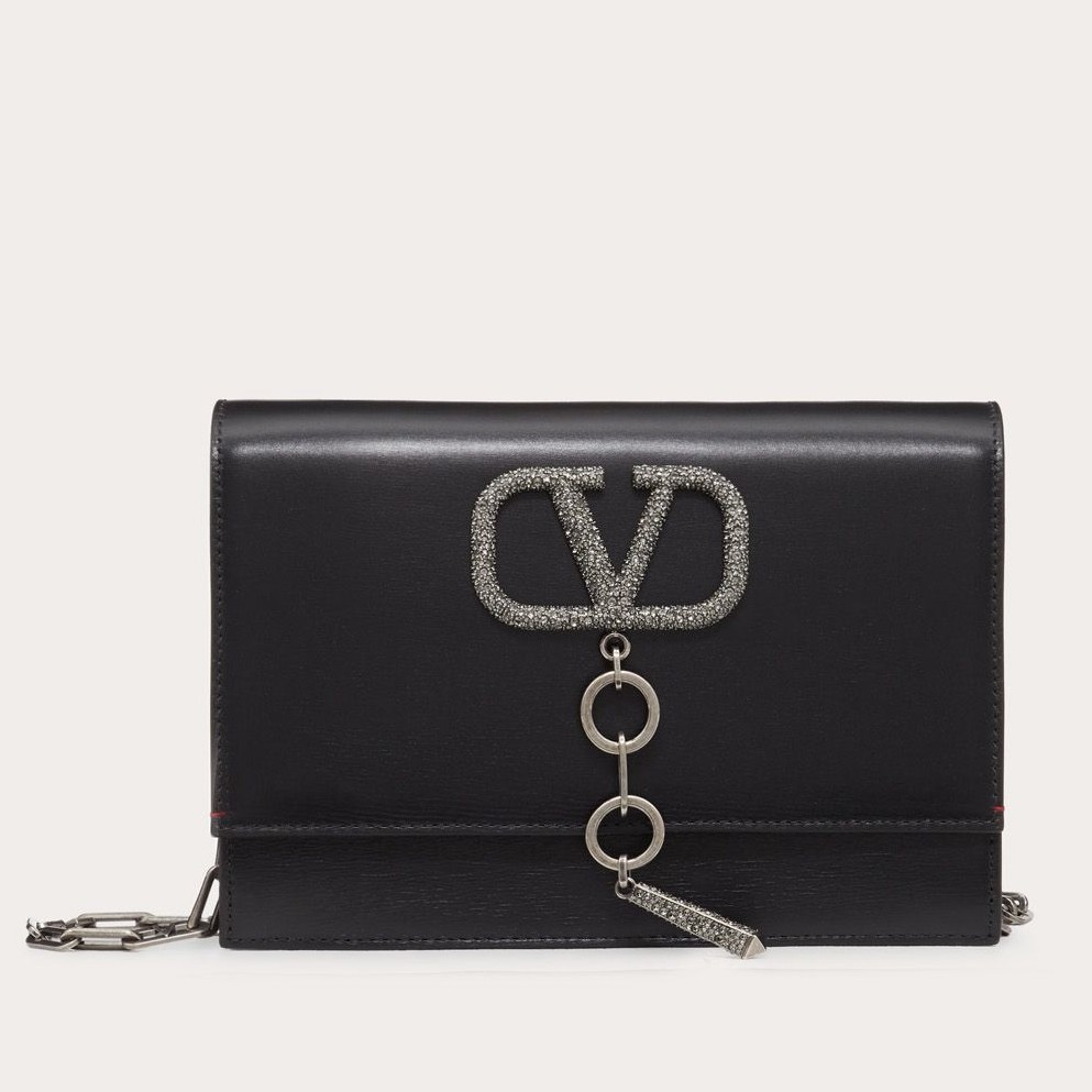 Valentino Vcase Black Chain Bag With Swarovski Crystals