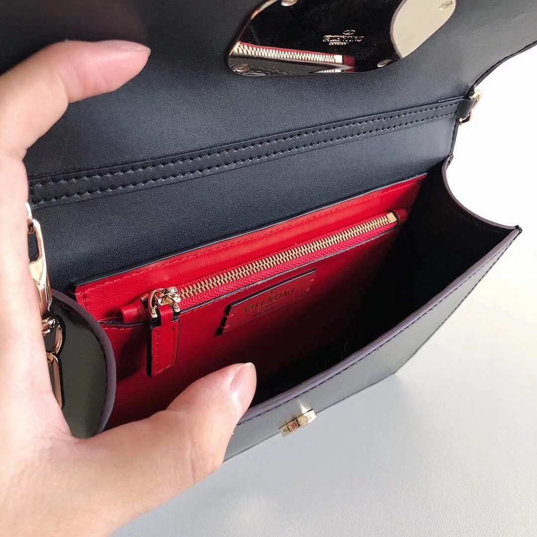 Valentino Vcase Small Chain Bag In Black Calfskin