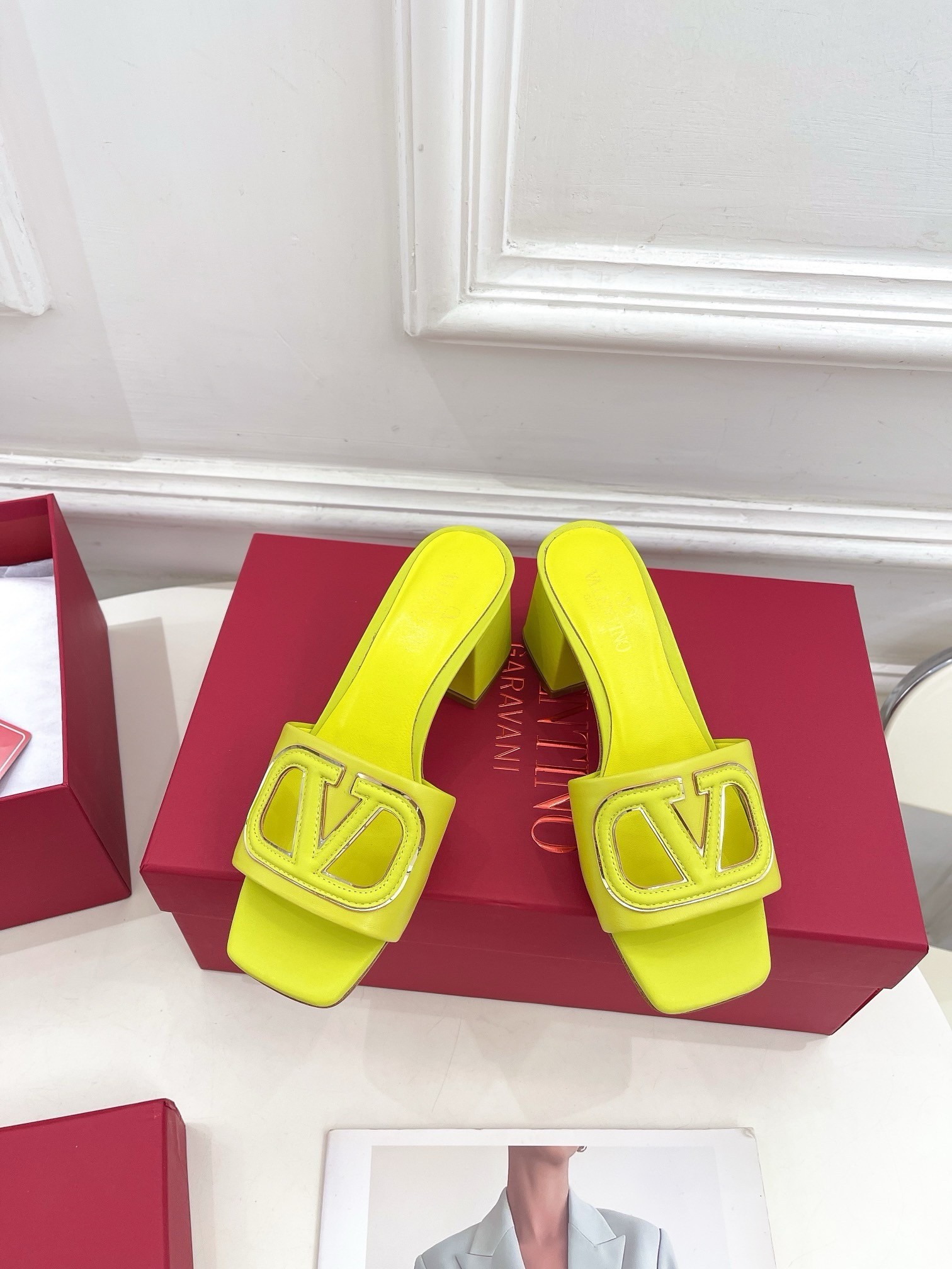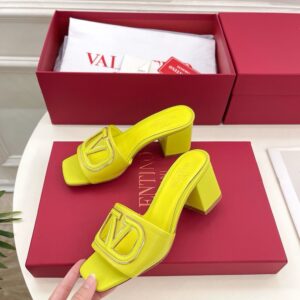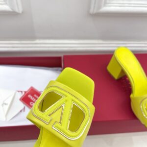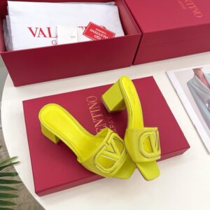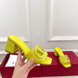 Valentino VLogo Cut-out Slide Sandals 60mm in Yellow Leather