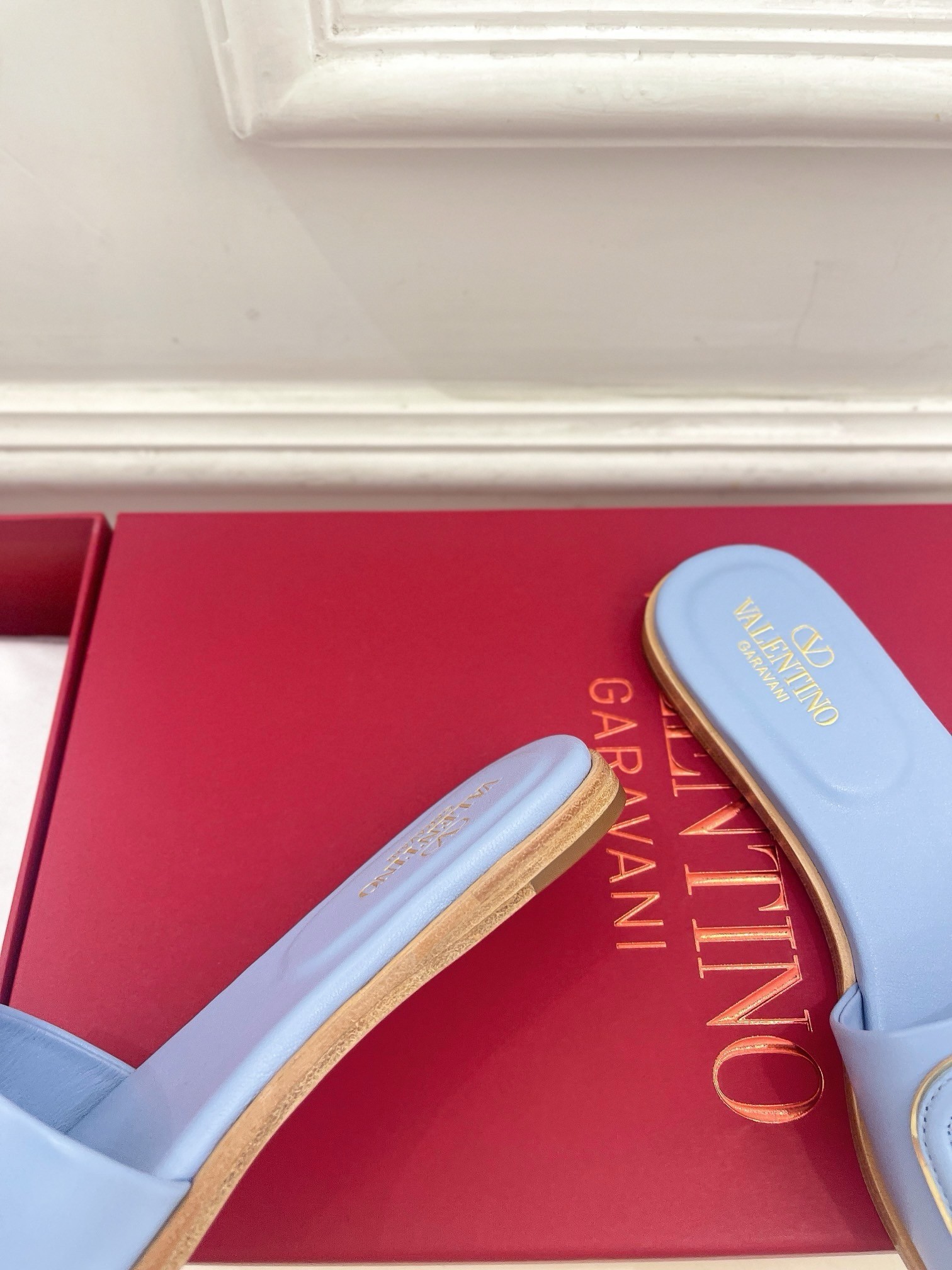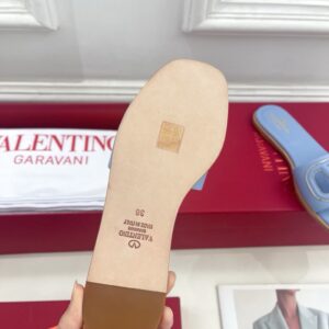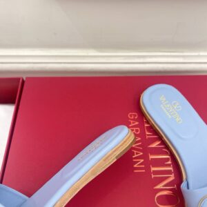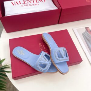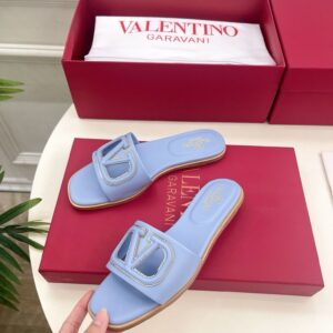 Valentino VLogo Cut-out Slide Sandals in Blue Leather
