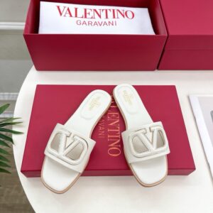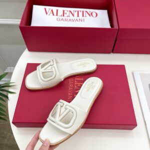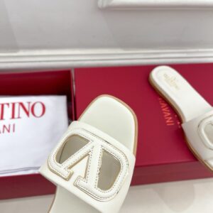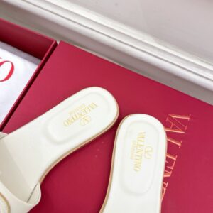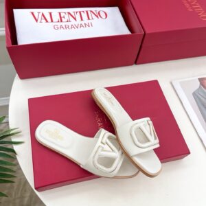 Valentino VLogo Cut-out Slide Sandals in White Leather