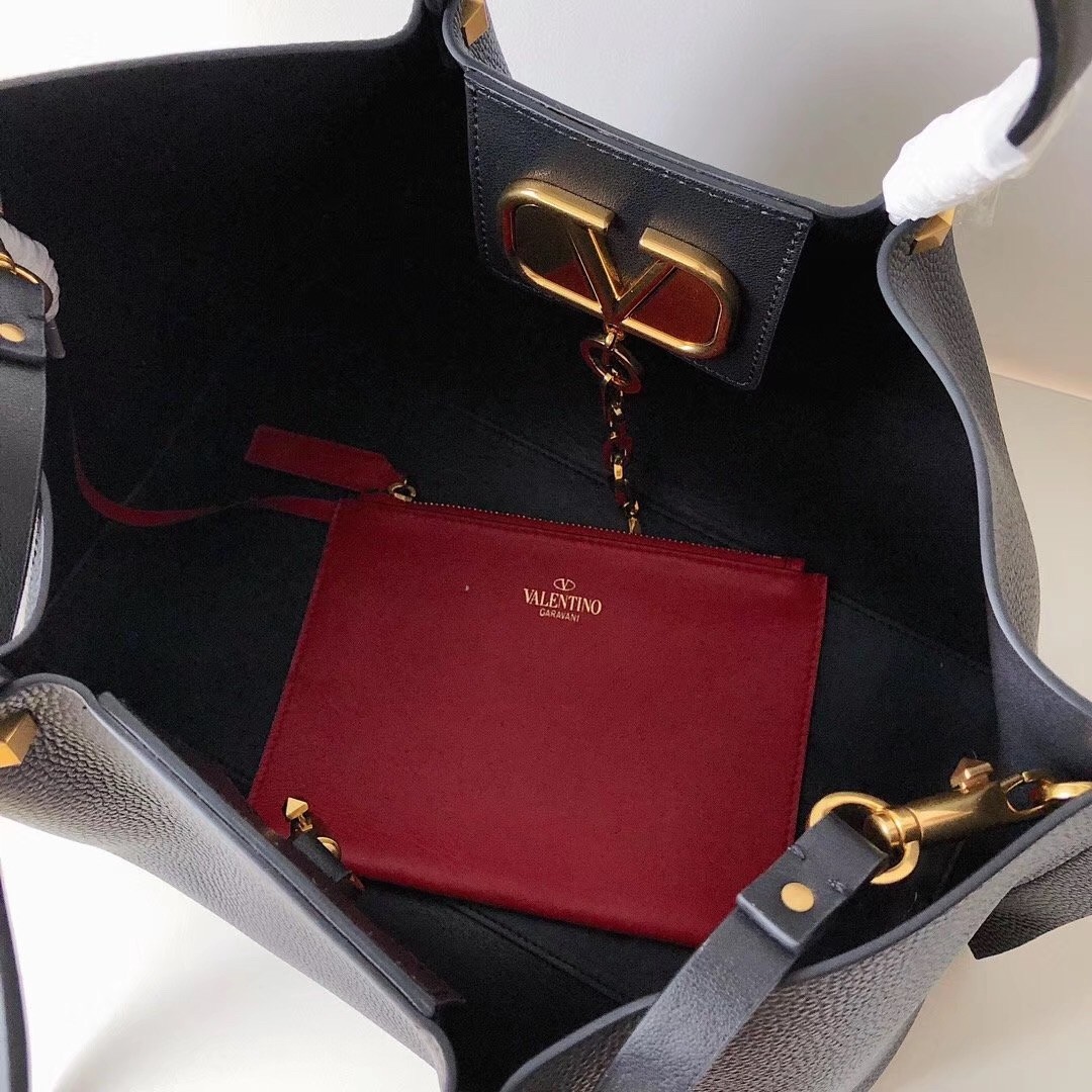 Valentino Vlogo Escape Medium Shopper In Black Grainy Calfskin