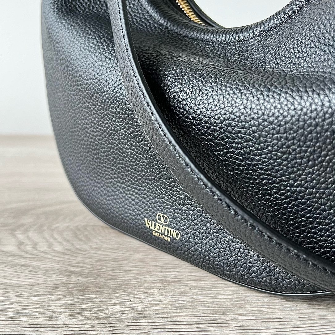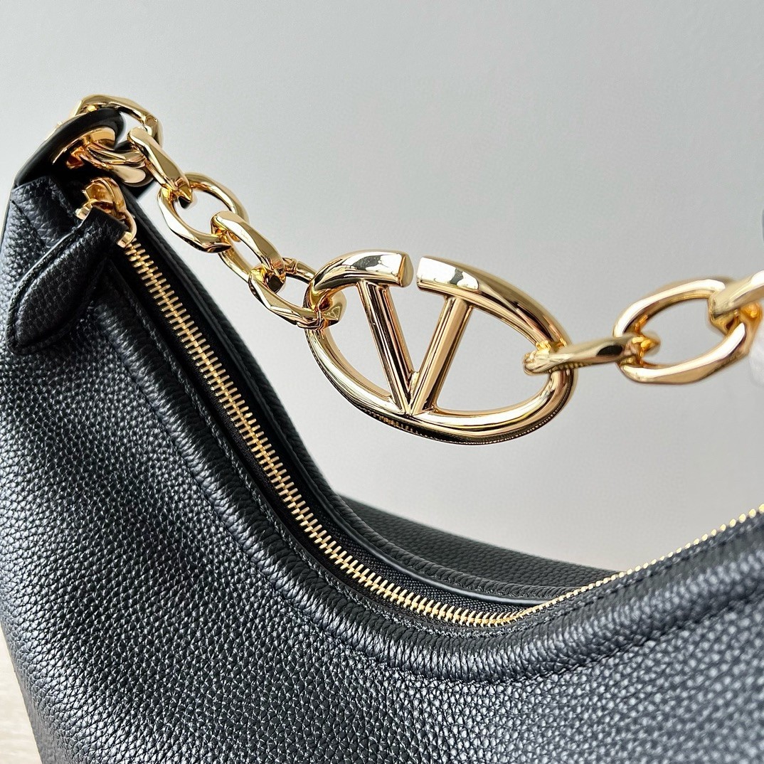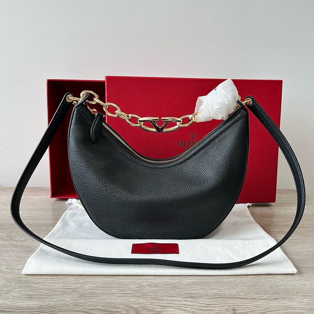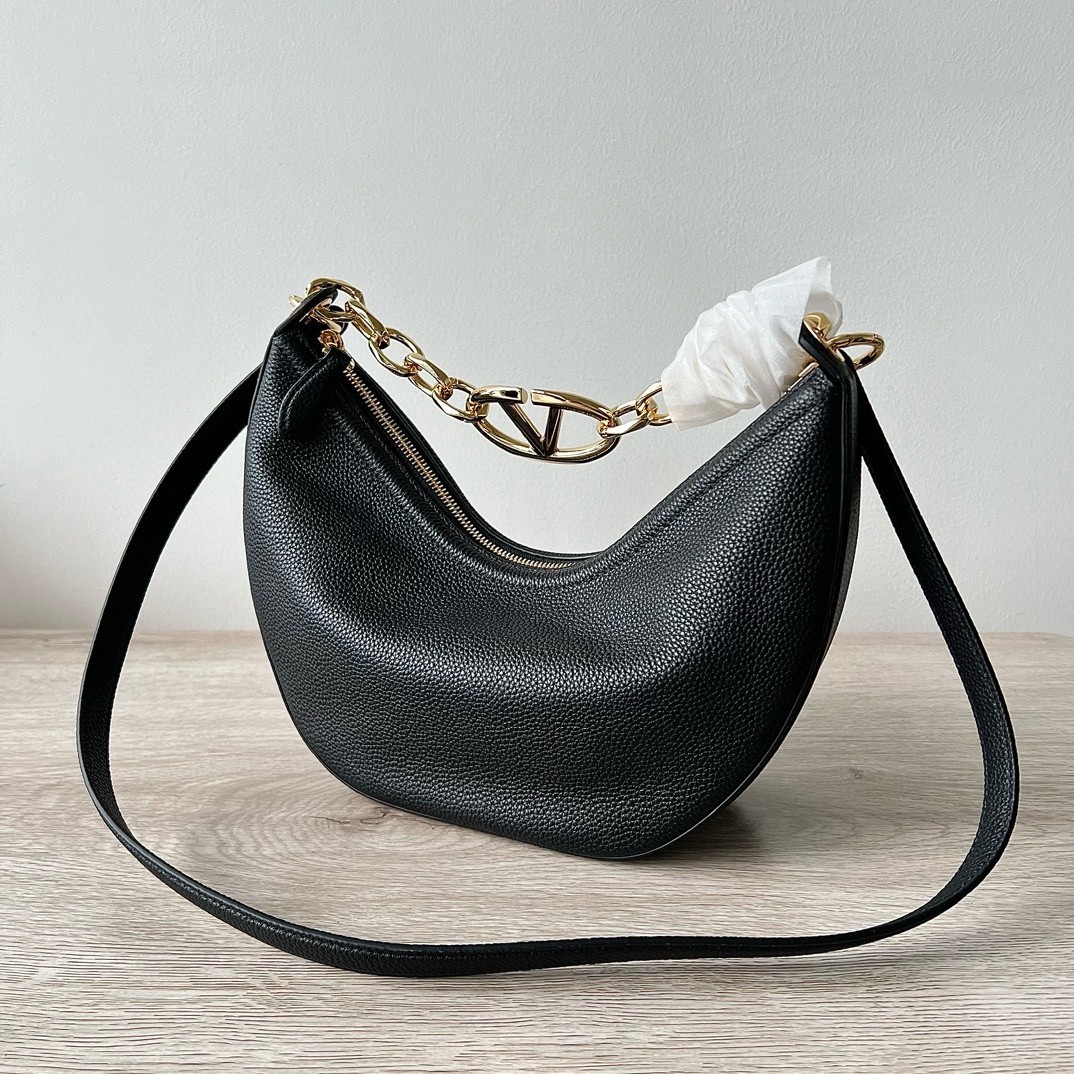 Valentino VLogo Moon Small Hobo Bag with Chain in Black Leather
