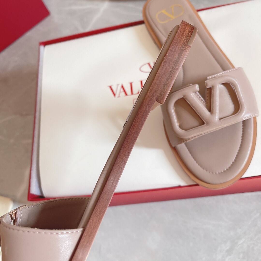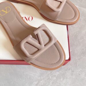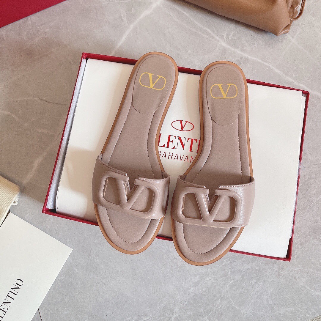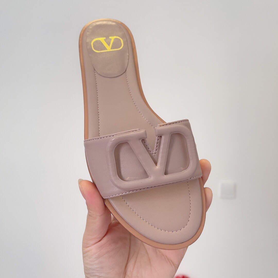 Valentino VLogo Signature Flat Slides In Poudre Calfskin