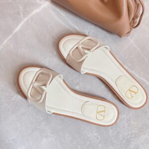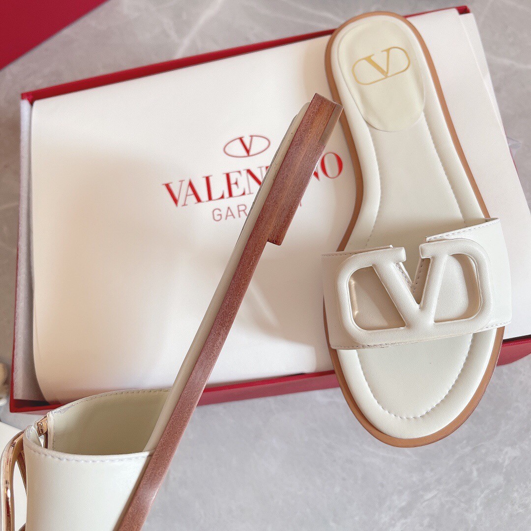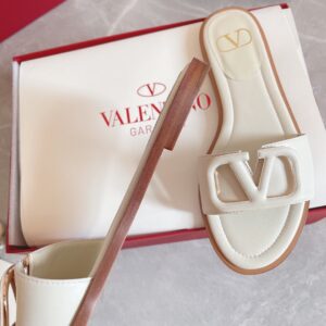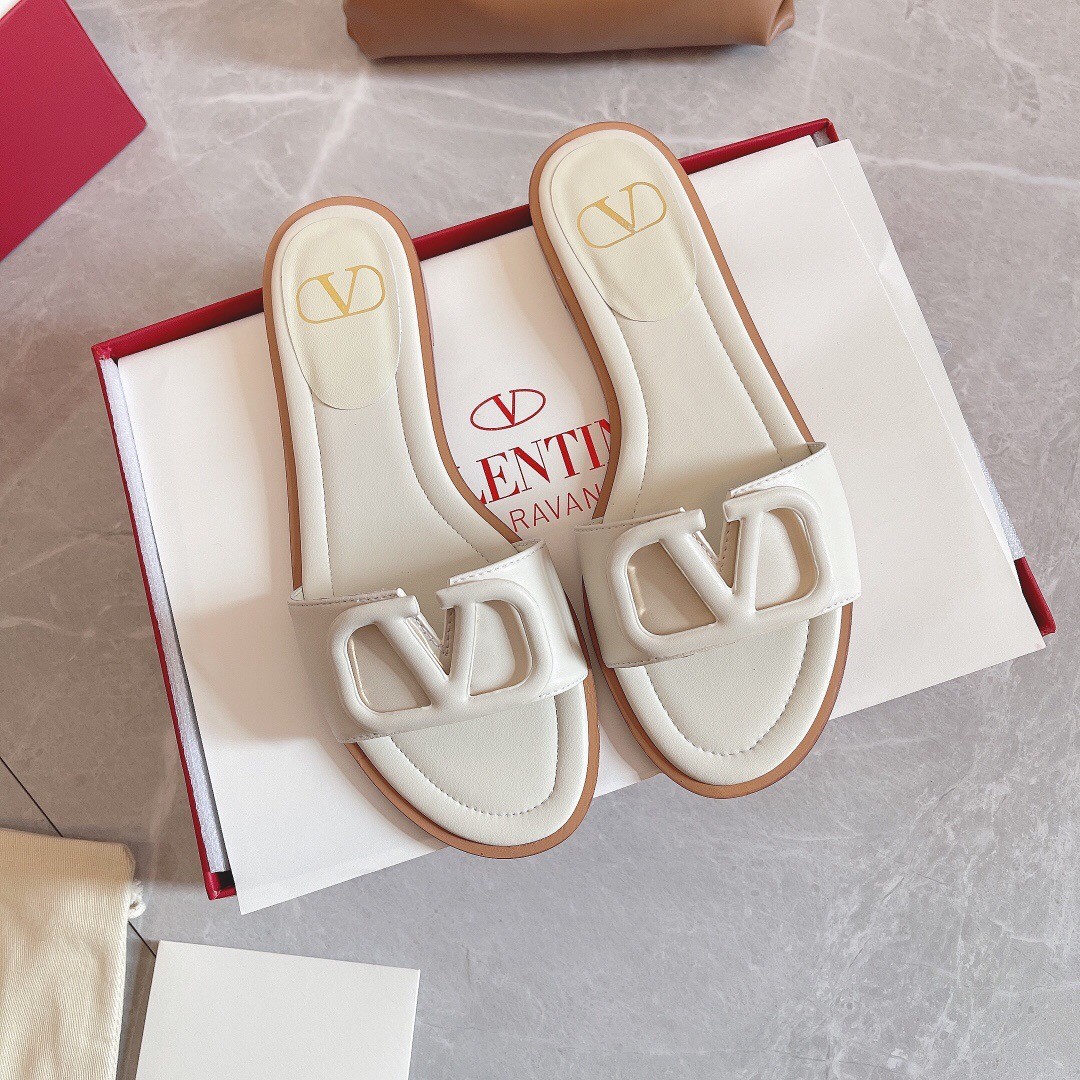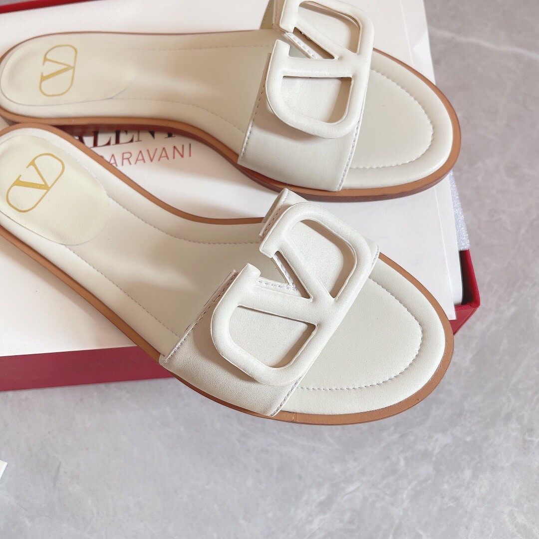 Valentino VLogo Signature Flat Slides In White Calfskin