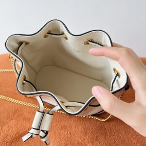 – Drawstring closure and chain strap