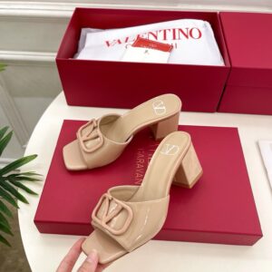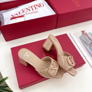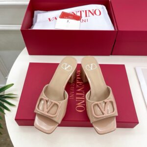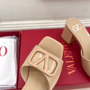 Valentino VLogo Slide Sandals 60mm in Rose Cannelle Patent Leather