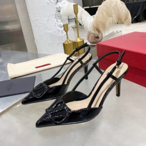 Valentino Vlogo Slingback Pumps 80mm In Black Patent Leather