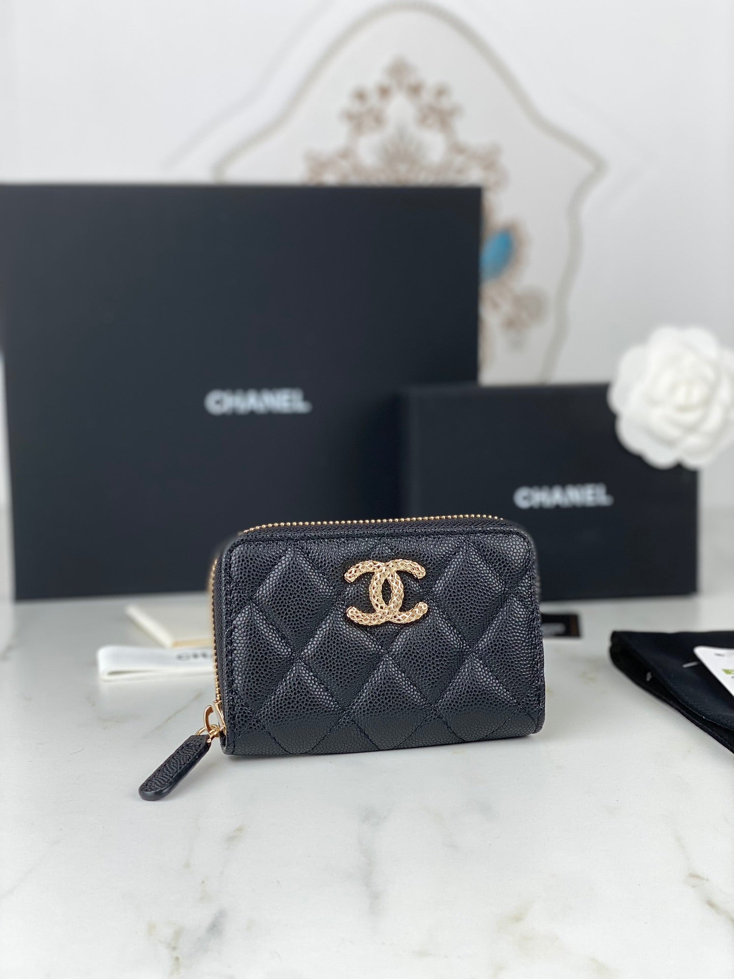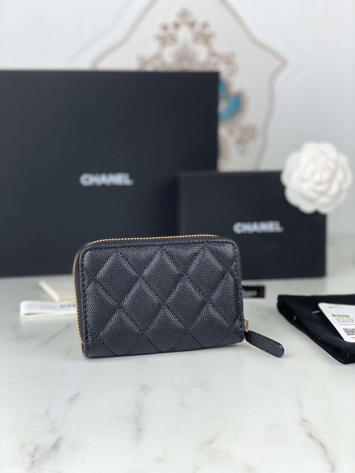 It comes with Dust box, Care manual, Tag and Paper bag.